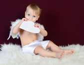 dziecko w kapeluszu siedzi w kosz