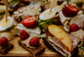 Małe kanapki podawane na talerzu podczas uroczystości. Przekąska dla gości