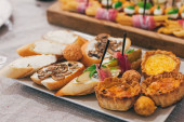 Zdjęcie "Małe kanapki podawane na talerzu podczas uroczystości. Przekąska dla gości" może być wykorzystywane do celów osobistych i komercyjnych zgodnie z warunkami zakupionej licencji Royalty-free. Obraz jest dostępny do pobrania w jakości wysokiej rozdzielczości do 5760x3840.