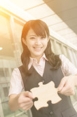 azjatycki biznes kobieta trzymając kawałek układanki