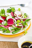Zdjęcie "rzodkiewki, kukurydza sałatka sałatka z musztardowym sosem" może być wykorzystywane do celów osobistych i komercyjnych zgodnie z warunkami zakupionej licencji Royalty-free. Obraz jest dostępny do pobrania w jakości wysokiej rozdzielczości do 5760x3840.