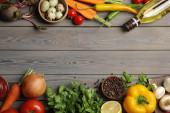 Zdjęcie "Ramka sk? adnik? w do gotowania na drewnianym stole, p? askie uk? ady. Miejsce na tekst" może być wykorzystywane do celów osobistych i komercyjnych zgodnie z warunkami zakupionej licencji Royalty-free. Obraz jest dostępny do pobrania w jakości wysokiej rozdzielczości do 5760x3840.