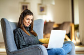 Zdjęcie "podekscytowany freelancer patrząc na aparat podczas siedzenia na kanapie w kuchni z laptopem" może być wykorzystywane do celów osobistych i komercyjnych zgodnie z warunkami zakupionej licencji Royalty-free. Obraz jest dostępny do pobrania w jakości wysokiej rozdzielczości do 5760x3840.