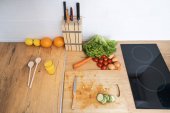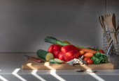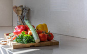 marmurowy stół z warzywami do przygotowywania i gotowania - przestrzeń do kopiowania
