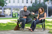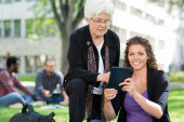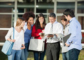 uczeń za pomocą cyfrowego tabletu w dół korytarz Uniwersytetu