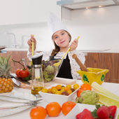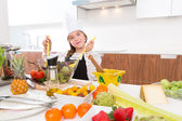 blond dziewczyna rodzaju juniorów szefa kuchni na blacie