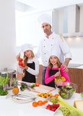 dziecko dziewczynka szefa kuchni na blacie śmieszne gest z rolką zagnieść