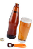 butelka piwa, otwieracz do butelek, na białym tle. ścieżka przycinająca.