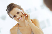 Zdjęcie "Szczęśliwa młoda kobieta nałożeniem kremu w łazience" może być wykorzystywane do celów osobistych i komercyjnych zgodnie z warunkami zakupionej licencji Royalty-free. Obraz jest dostępny do pobrania w jakości wysokiej rozdzielczości do 5760x3840.