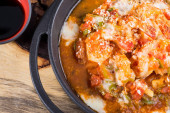 Tradycyjne tureckie śniadanie jedzenie menemen wykonane przez jaja i pomidory