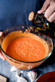 calcots z grilla, słodki cebulą i sosem romesco typowe dla ca