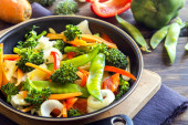 Gulasz wołowy z sezonowych warzyw.Mięso wołowe pieczone z warzyw