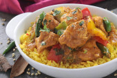 tradycyjne kurczaka jalfrezzi curry z ryżem pilau