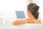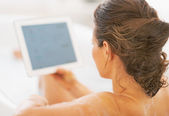 spokojny młoda kobieta i telefon komórkowy na masaż tabeli