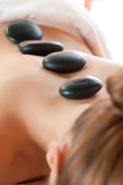zbliżenie na spokojny młoda kobieta odbiera masaż gorącymi kamieniami