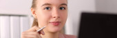 częściowy widok radosnej kobiety degustacja płatków kukurydzianych, orientacja pozioma