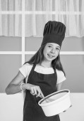 dziecko przygotować jedzenie w kuchni, kulinarne, mundur, kapelusz,