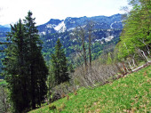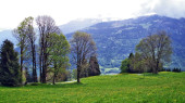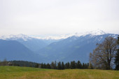 Schweizer Bergansicht bei bewoelktem Himmel