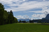 Schweizer Bergansicht bei bewoelktem Himmel
