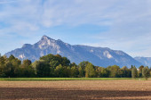 Schweizer Bergansicht bei bewoelktem Himmel
