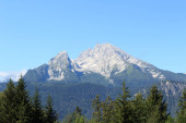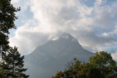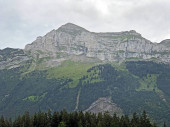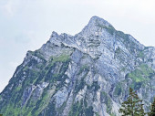 Schweizer Bergansicht bei bewoelktem Himmel