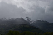 Schweizer Bergansicht bei bewoelktem Himmel