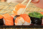 Zdjęcie "łosoś, krewetki, seawe ed sushi w zasobniku" może być wykorzystywane do celów osobistych i komercyjnych zgodnie z warunkami zakupionej licencji Royalty-free. Obraz jest dostępny do pobrania w jakości wysokiej rozdzielczości do 5760x3840.