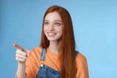 Zdjęcie "Całkiem wesoła ruda dziewczyna szczęśliwie pokazuje kciuk w górę gest przed kamerą na kolorowe tło. Dobra ekspresja" może być wykorzystywane do celów osobistych i komercyjnych zgodnie z warunkami zakupionej licencji Royalty-free. Obraz jest dostępny do pobrania w jakości wysokiej rozdzielczości do 5760x3840.