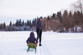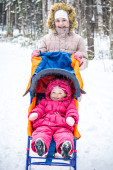 adorable dziewczyna szczęśliwy sankach jej siostra