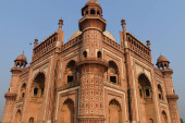 Hipnotyzujący widok safdarjung grobowiec pomnik i śmietnik od strony trawnika w zimowym poranku.