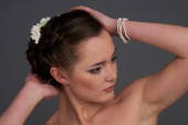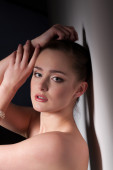 portret dziewczynki w białej koszuli na czarnym tle