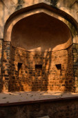 Zdjęcie "Słońce tworzy jakiś dramatyczny widok na fort, pomnik przy hauz khas pomnik od strony trawnika w zimowy mglisty poranek." może być wykorzystywane do celów osobistych i komercyjnych zgodnie z warunkami zakupionej licencji Royalty-free. Obraz jest dostępny do pobrania w jakości wysokiej rozdzielczości do 5760x3840.
