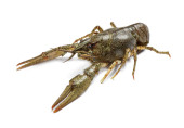 Świeże surowe raki wyizolowane na białym. Zdrowe owoce morza