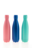 Trzy butelki produktów higieny osobistej na białym tle