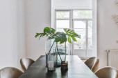 Nowoczesne wnętrze domu z krzesłami i stołem kawowym