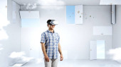 Kobieta w wirtualnej rzeczywistości zeszła ze schodów