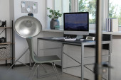 Zdjęcie "Przestronne wnętrze miejsca pracy z komputerem i krzesłem wiszącym" może być wykorzystywane do celów osobistych i komercyjnych zgodnie z warunkami zakupionej licencji Royalty-free. Obraz jest dostępny do pobrania w jakości wysokiej rozdzielczości do 5760x3840.