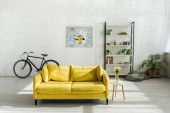 Nowoczesne studio z wiszącym krzesłem i miejscem pracy z komputerem