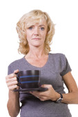 kobieta siedzi na krześle, picia kawy
