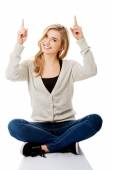 Zdjęcie "młoda kobieta, wskazując na miejsce" może być wykorzystywane do celów osobistych i komercyjnych zgodnie z warunkami zakupionej licencji Royalty-free. Obraz jest dostępny do pobrania w jakości wysokiej rozdzielczości do 5760x3840.