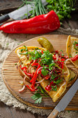 Pyszne i proste śniadanie, świeże warzywa i chleb domowej roboty