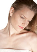Młoda piękna kobieta w szlafrok