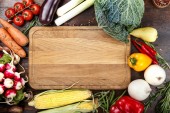 Zdrowe pochodzenie żywności. Koncepcja zdrowej żywności, świeże warzywa. Wegańska lub dietetyczna koncepcja żywności. Układ tła z wolną przestrzenią tekstową.
