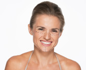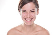 Retrato de mujer joven sonriente con la cara húmeda