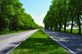 czarny serpentyna drogi asfaltowej w słoneczny dzień.