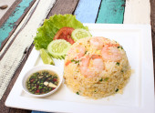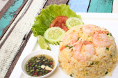 mieszać smażony ryż z krewetkami