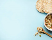 Zdjęcie "różne rodzaje chleba dietetycznego, chleba chrupkiego z gryki okrągłej, chleba chrupkiego z pszenicy i chleba chrupkiego z płatkami owsianymi i ziarnami pszenicy, lnu i sezamu na niebieskim tle. mąka zdrowa" może być wykorzystywane do celów osobistych i komercyjnych zgodnie z warunkami zakupionej licencji Royalty-free. Obraz jest dostępny do pobrania w jakości wysokiej rozdzielczości do 5760x3840.