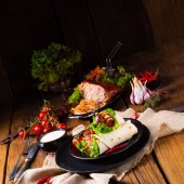 Rolada warzywna z pieczonej wieprzowiny z sałatkami