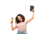 Zdjęcie "Uczennica trzyma książkę i patrząc na bańki mowy z powrotem do szkoły liternictwo w pobliżu gadżetów, globus i ilustracji na różowy " może być wykorzystywane do celów osobistych i komercyjnych zgodnie z warunkami zakupionej licencji Royalty-free. Obraz jest dostępny do pobrania w jakości wysokiej rozdzielczości do 5760x3840.