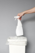 Przycięta ręka za plastikową torbą. Sylwetka osoby anonimowej dotykającej zmarszczonej powierzchni na przezroczystej plastikowej torbie w kolorze białym. Skupienie selektywne
